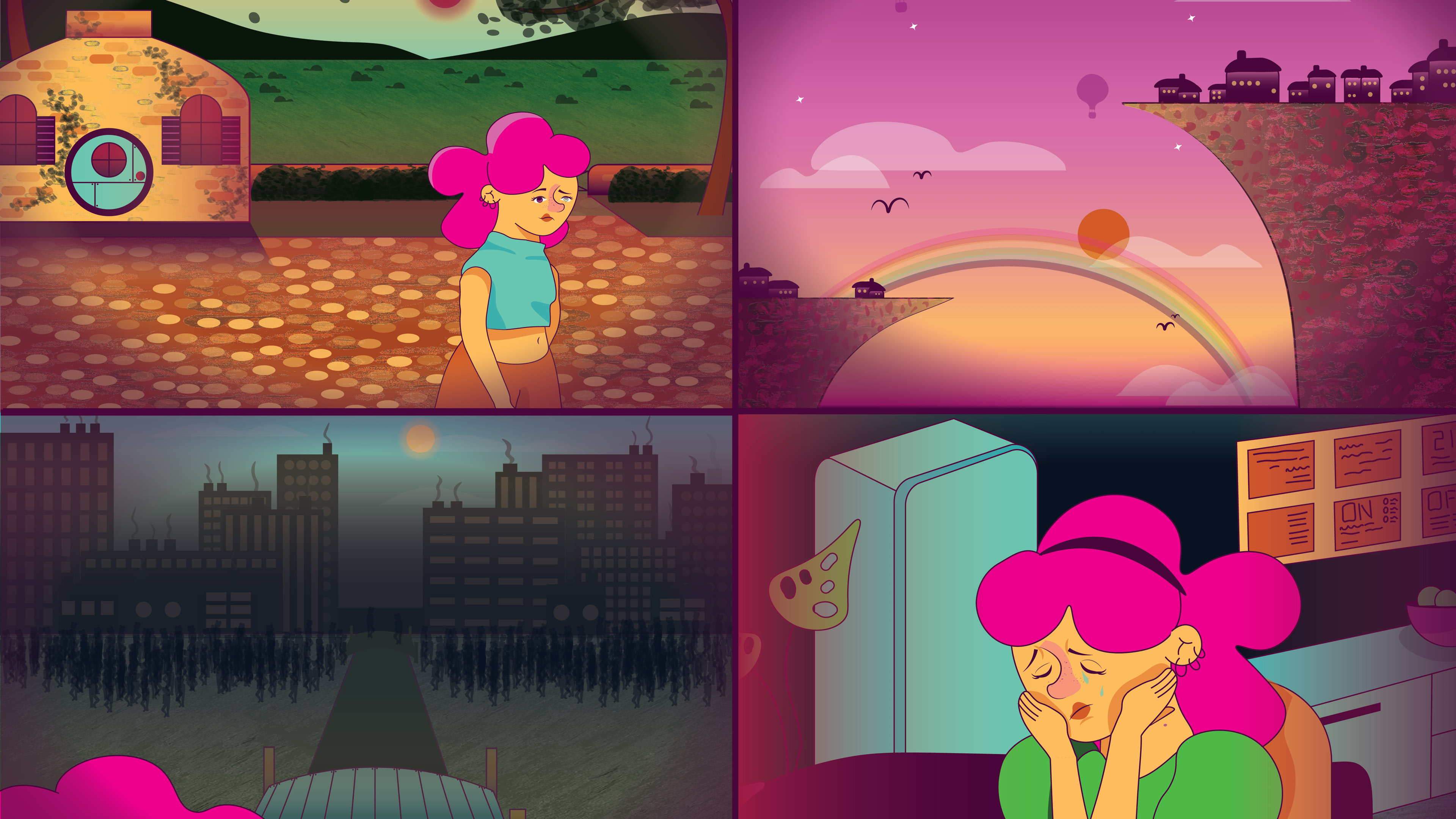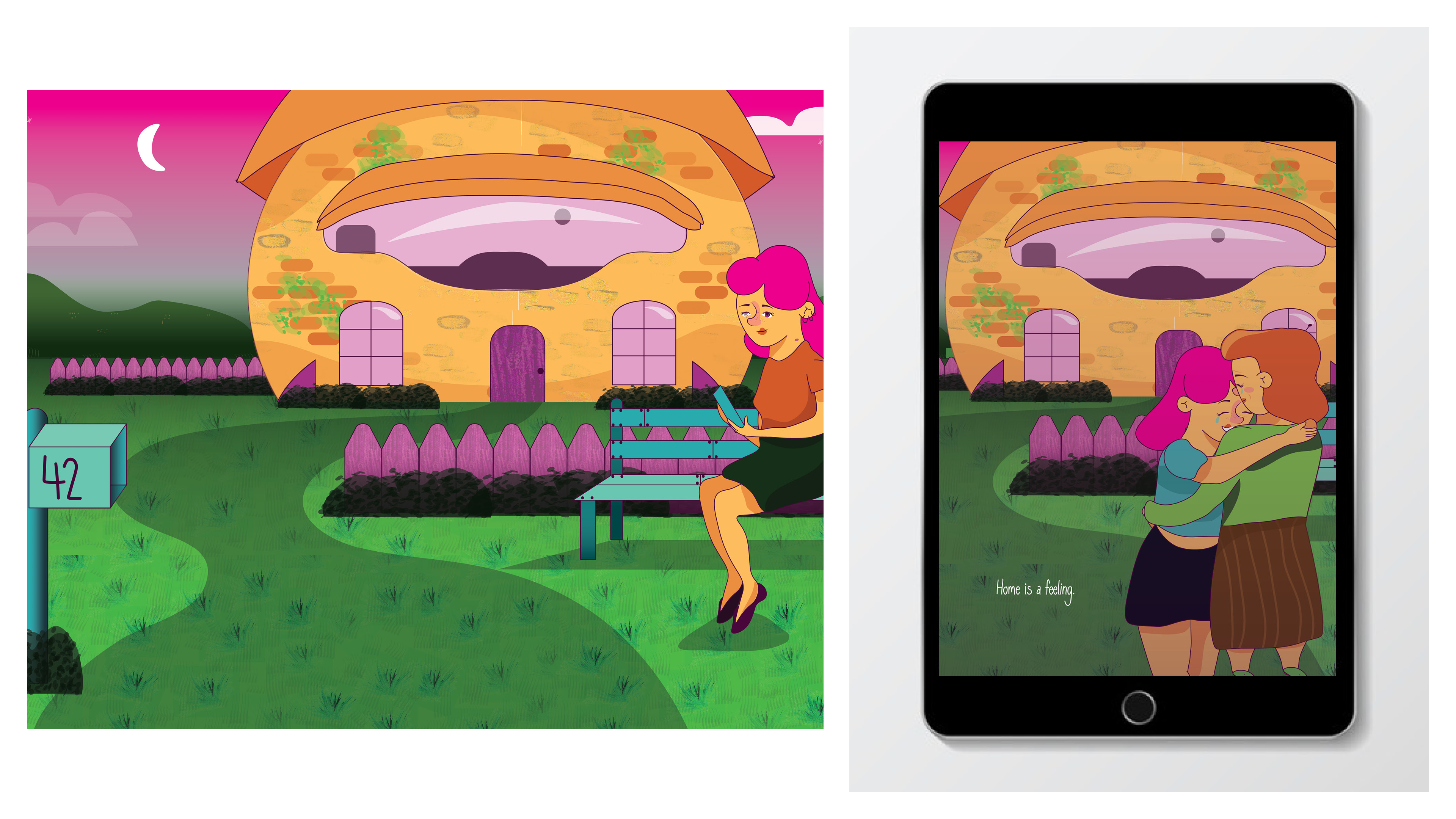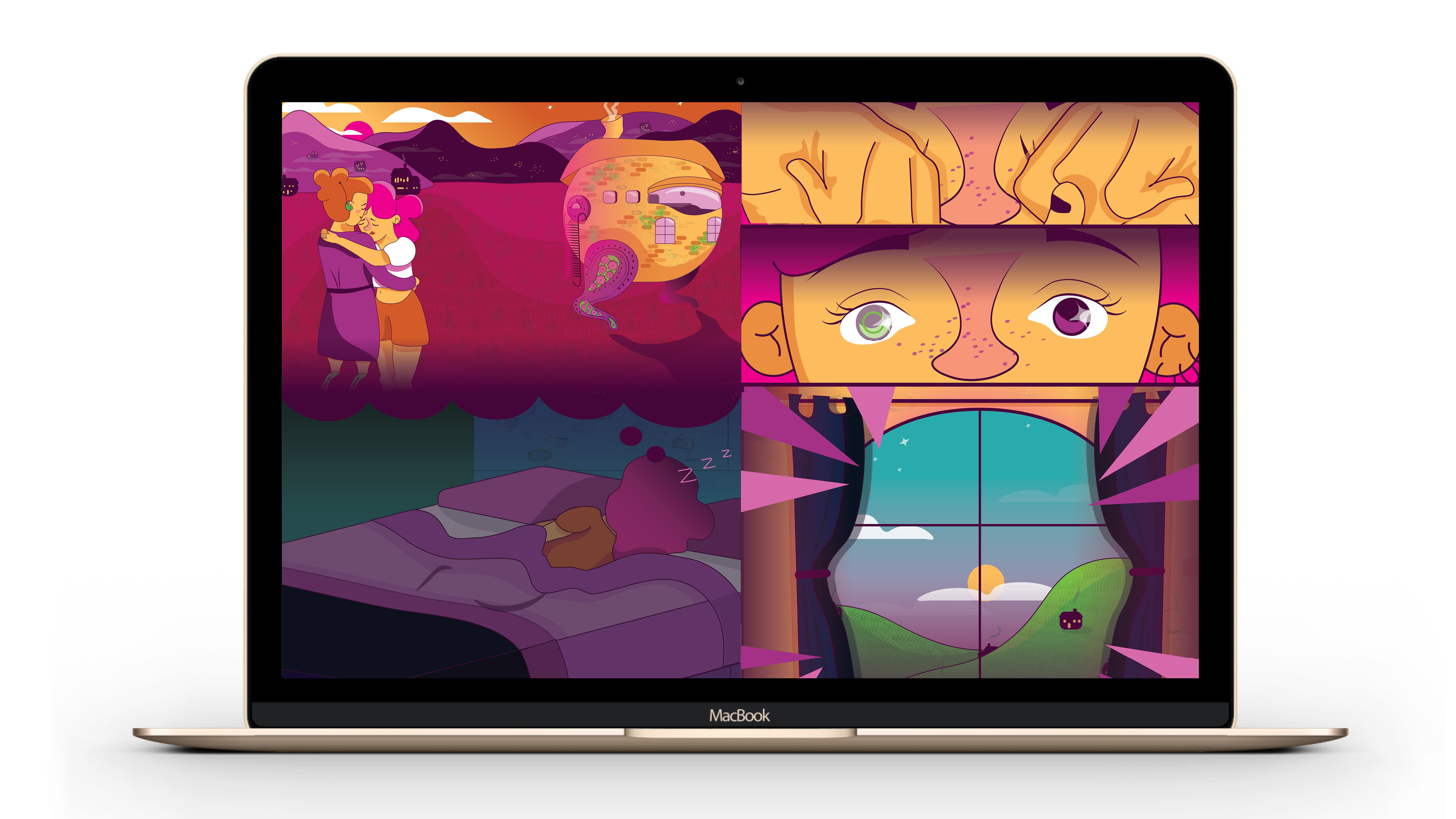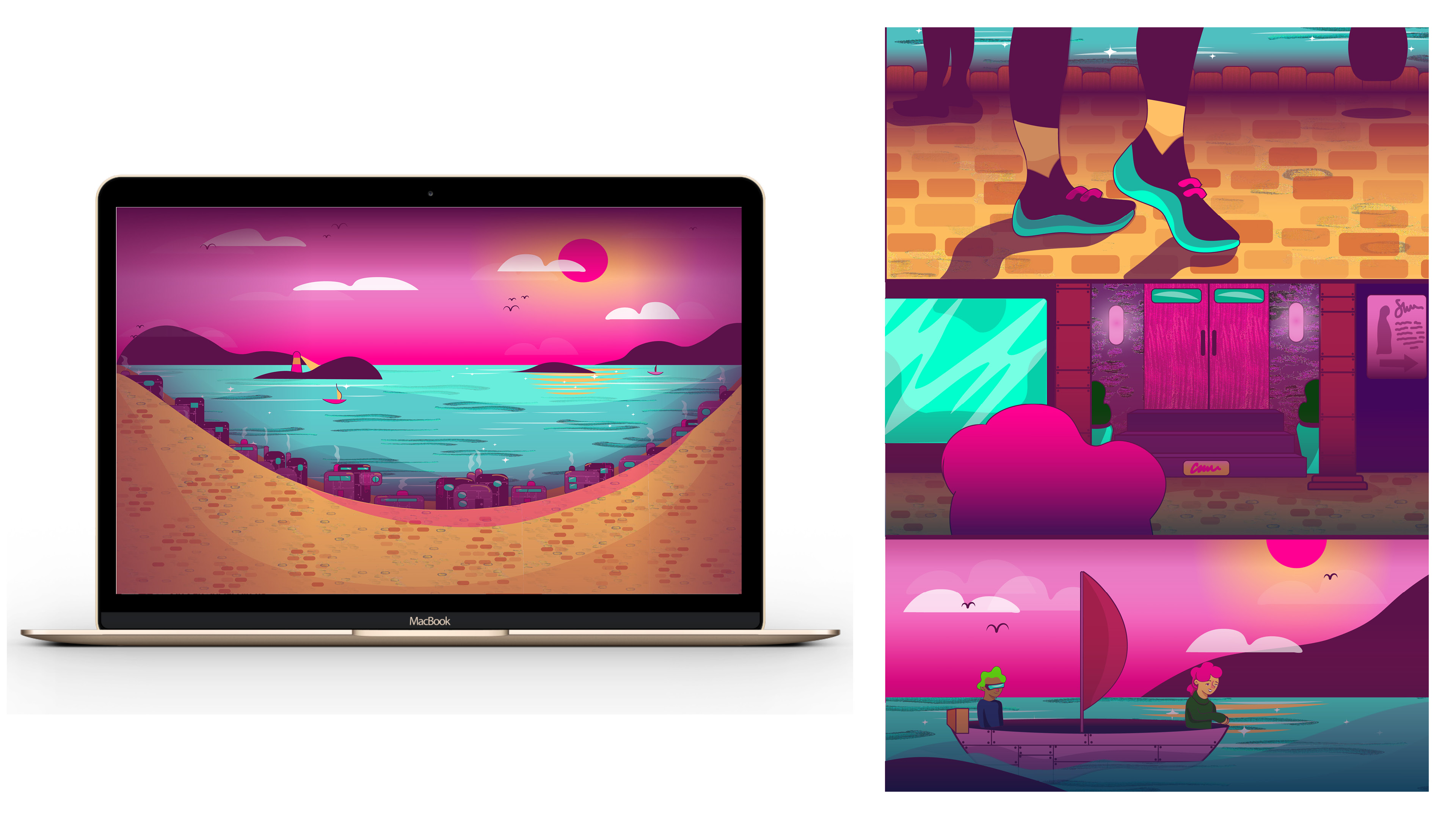 Creative collaborators for this assignment include Danielle Herbst (Digital Design and animation), Max Whitehead (Illustration and original line work) and Allison Brennan (Illustration and original world design, character colouration).