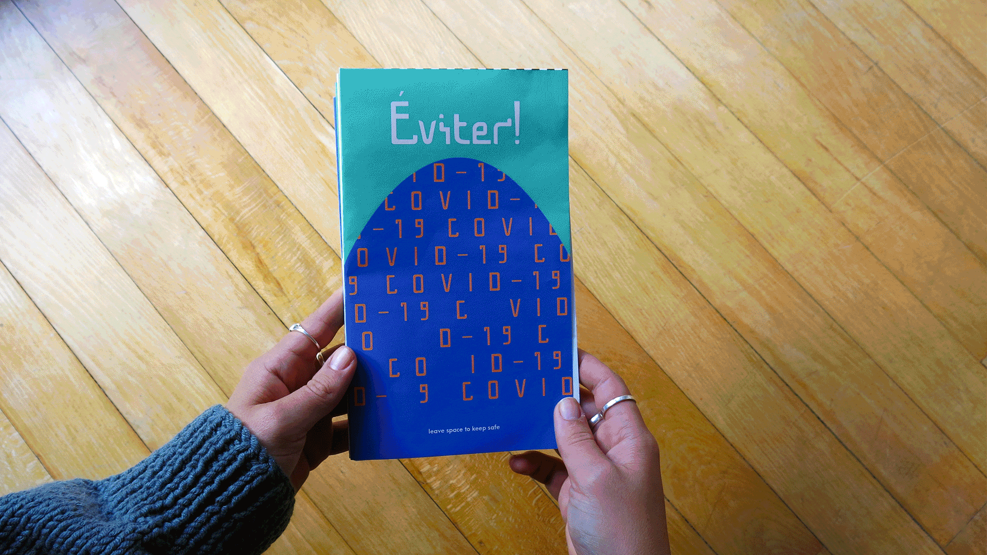 To solve the core need of a South African community vulnerable to the COVID-19 virus, Éviter communicates the importance of the ‘distance rule’ to French–speaking refugees. This group of people already know the difficulties of distance having travelled from west African countries to seek refuge here, but unfortunately the global pandemic requires even more space between loved ones. The Éviter typeface was created to mimic the technique of batik, a west African fabric art process, and was used in an informative zine which, when torn in half, becomes a visual reminder of the one and two meter spacing rule.