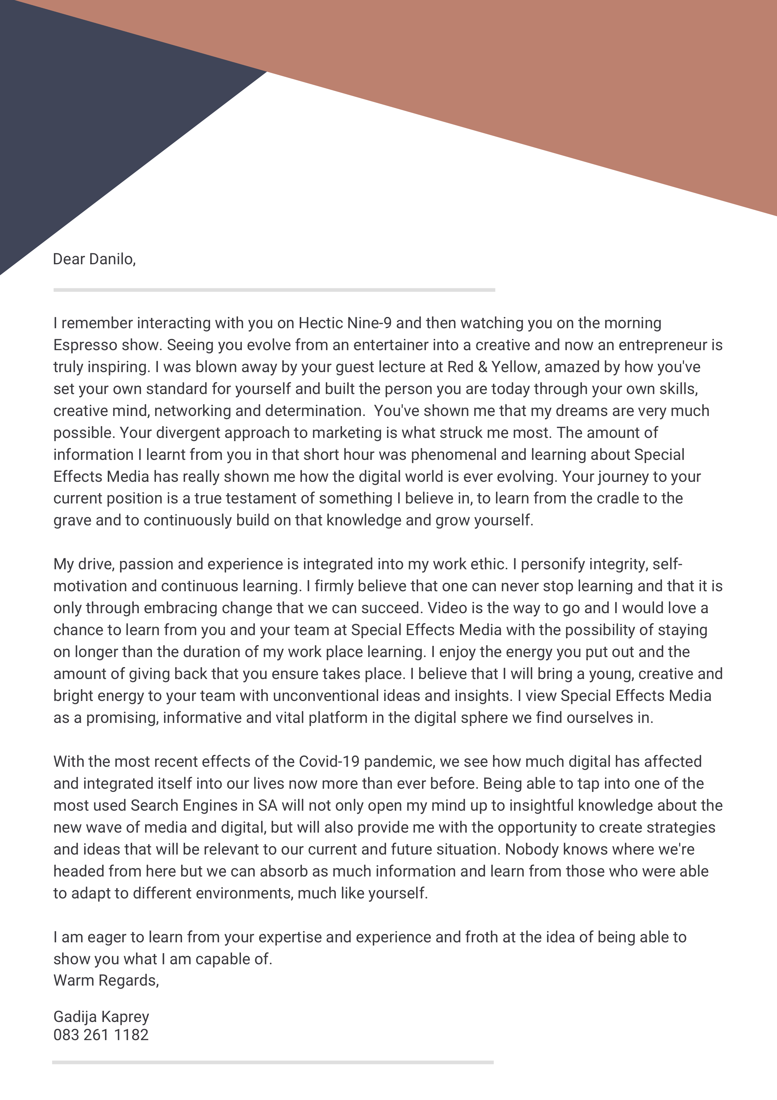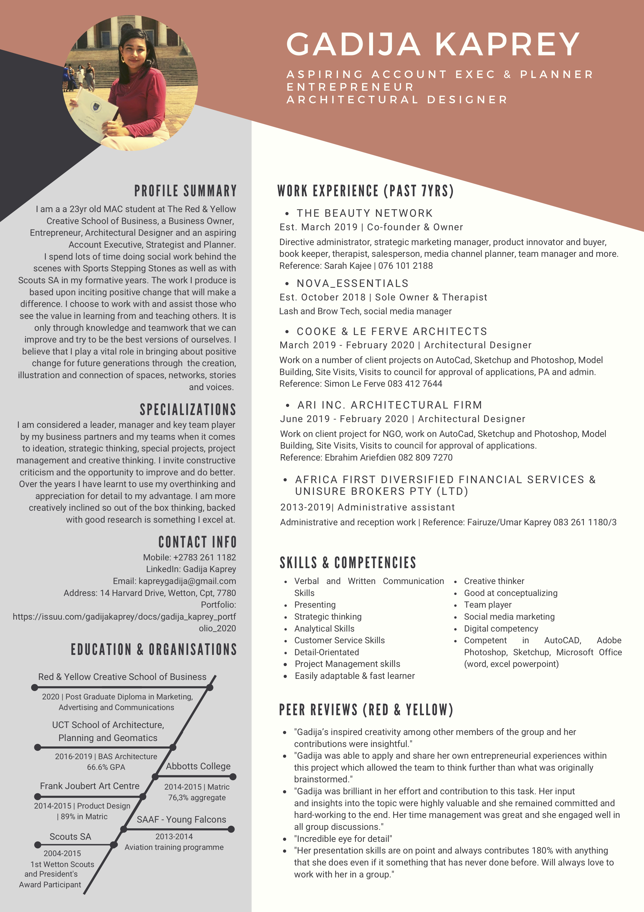 A 23 year old workaholic with a big heart who loves her sleep but stays up past 2am on most days. A wife, sister, daughter, student and business owner who wants society to be better for themselves and in turn, everyone around them.