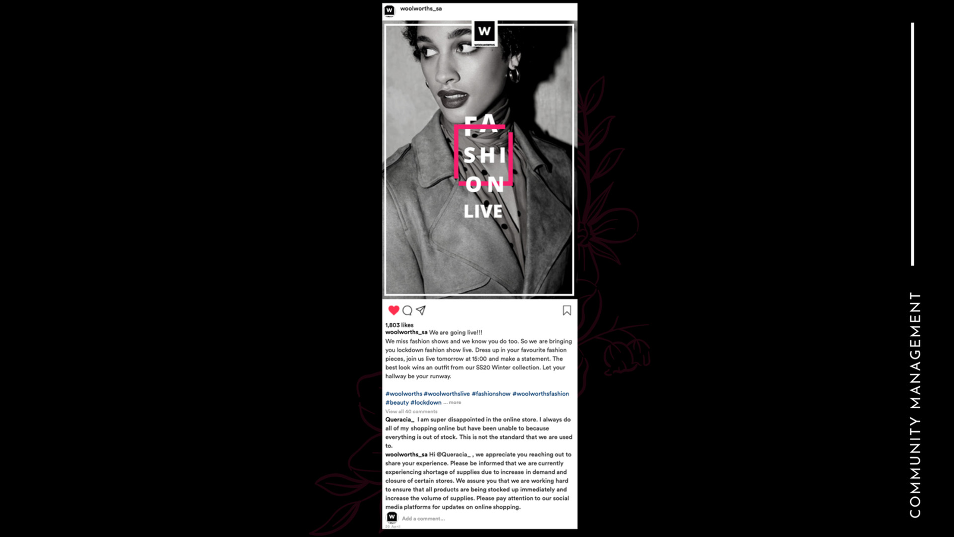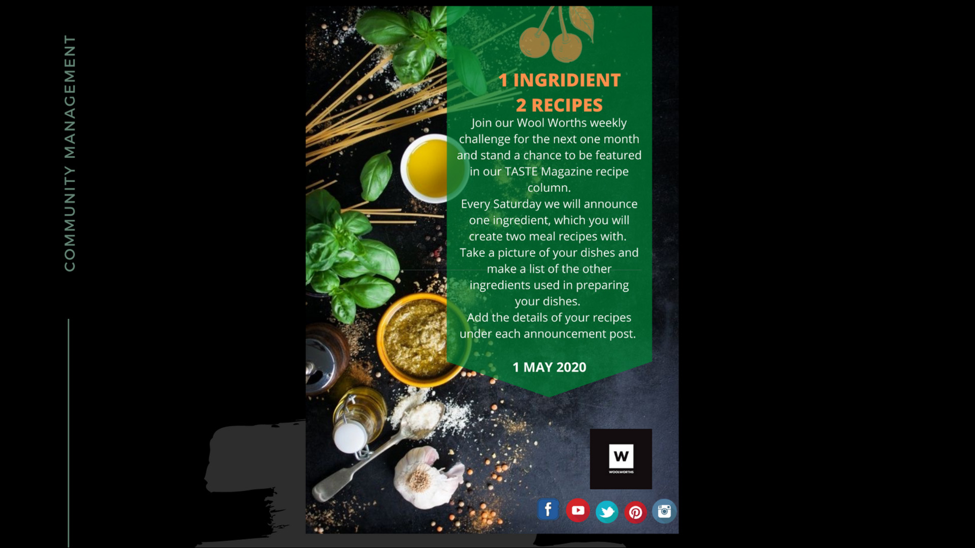 Community management helps a brand to build authentic relationships with their audience and this brief required engaging with the audience of a brand. The brand assigned to me for this brief is Woolworths and this brief goes into two parts. The first part entails planning an online community activity that the target audience for the brand will be actively involved in. The second part of the brief involves creating a post that encourages engagement with the audience. This second post goes on to the student forum where a fellow student comments with a query and I respond to their query considering brand tone.