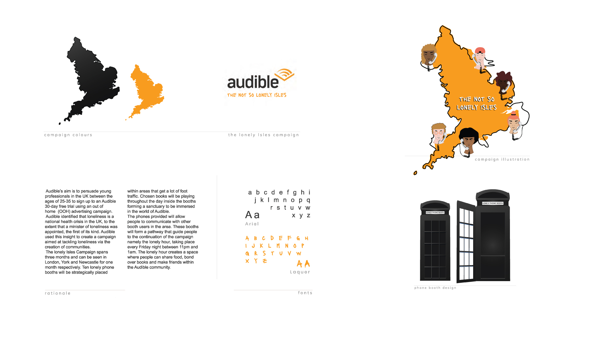 The brief tasked us to create a campaign for Audible UK, encouraging potential users to download and subscribe to audibles subscription service. Our launch campaign is derived from the insight that Britain has been voted to be the loneliest nation in Europe.